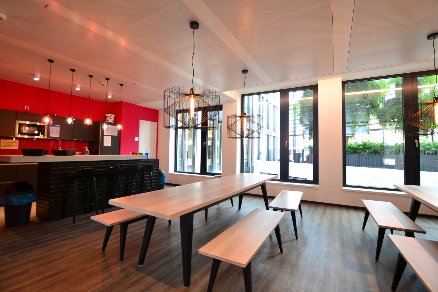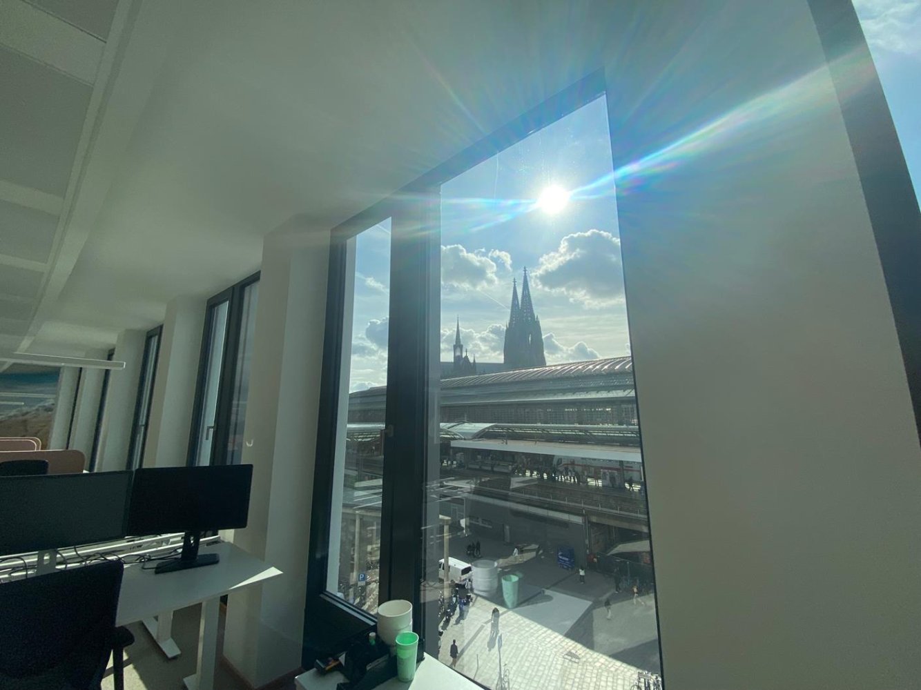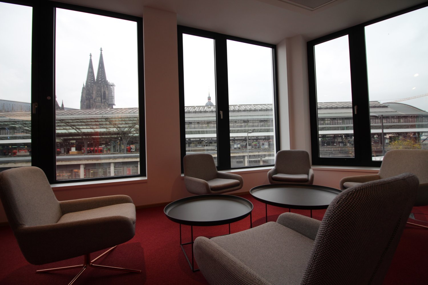 Das moderne Ambiente unterstreicht eine innovative Arbeitsatmosphäre und bietet zugleich einen der schönsten Ausblicke von ganz Köln.