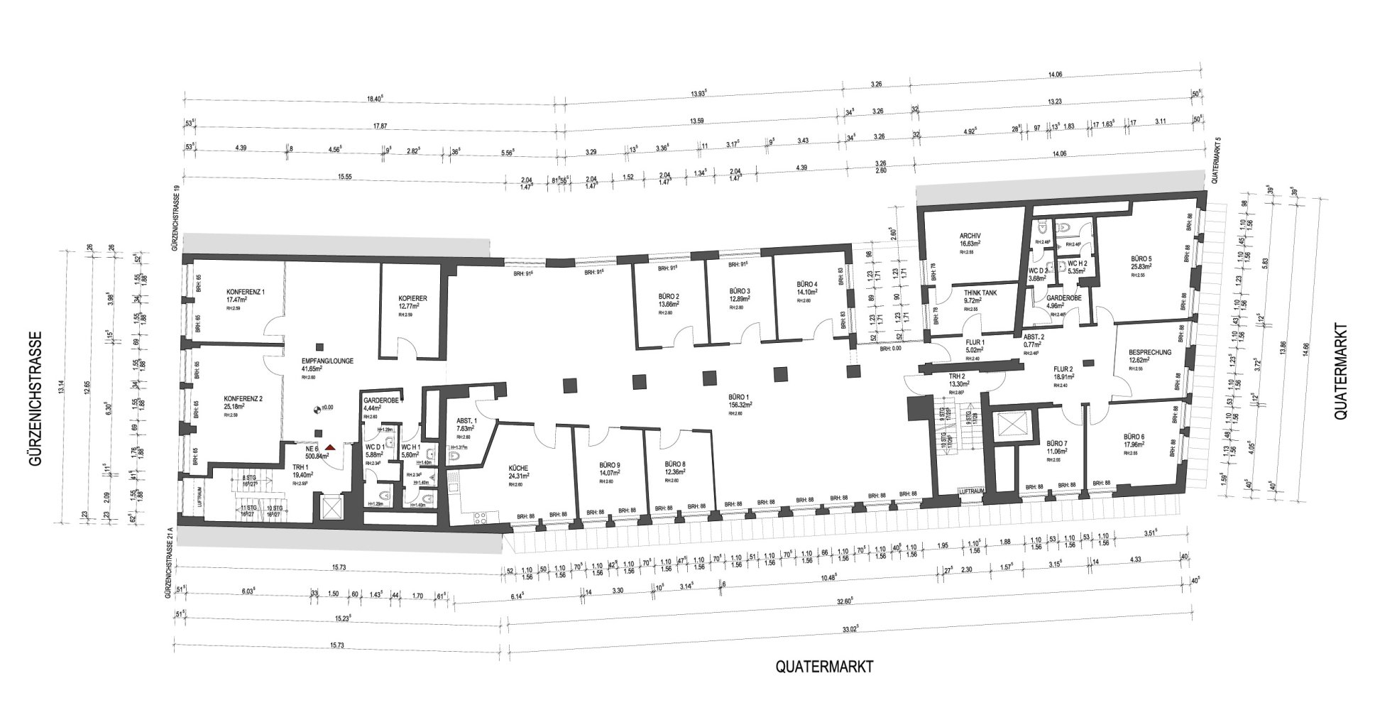 Das 4-geschossige Büro- und Geschäftshaus aus dem Jahr 1959 befindet sich mitten auf der beliebten Gürzenichstraße unweit der Kölner Altstadt.Über das neu gestaltete Foyer gelangt man zu dem Aufzug und somit barrierefrei in die Büroflächen. Die Einheiten wurden sukzessive im Haus saniert und entsprechen den heutigen Anforderungen an einen modernen Arbeitsplatz. Die vakante Einheit ist hochwertig mit teilweise Glaswänden und Kühlung ausgestattet. Stellplätze können in der gegenüberliegenden Tiefgarage am Quatermarkt oder unter dem Heumarkt angemietet werden.
