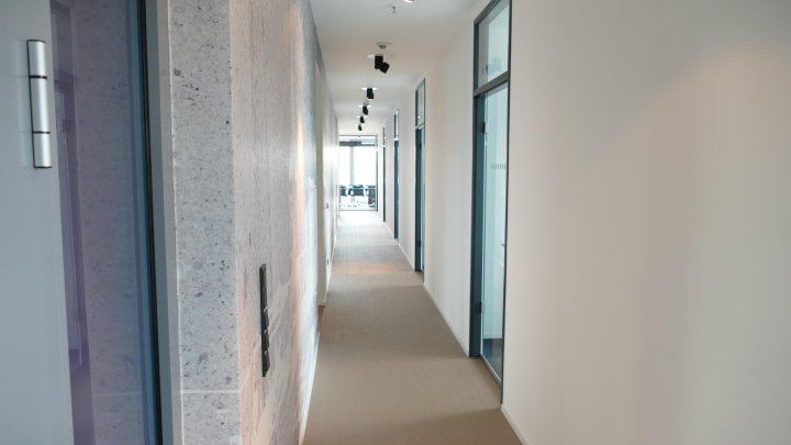 Die Bürofläche verfügt über großzügige und helle Räume, die individuell gestaltet werden können. Dank der zahlreichen Fenster gelangt viel Tageslicht in die Büros, was eine angenehme Arbeitsatmosphäre schafft. Die Räumlichkeiten bieten ausreichend Platz für Arbeitsplätze, Besprechungsräume und Aufenthaltsbereiche.