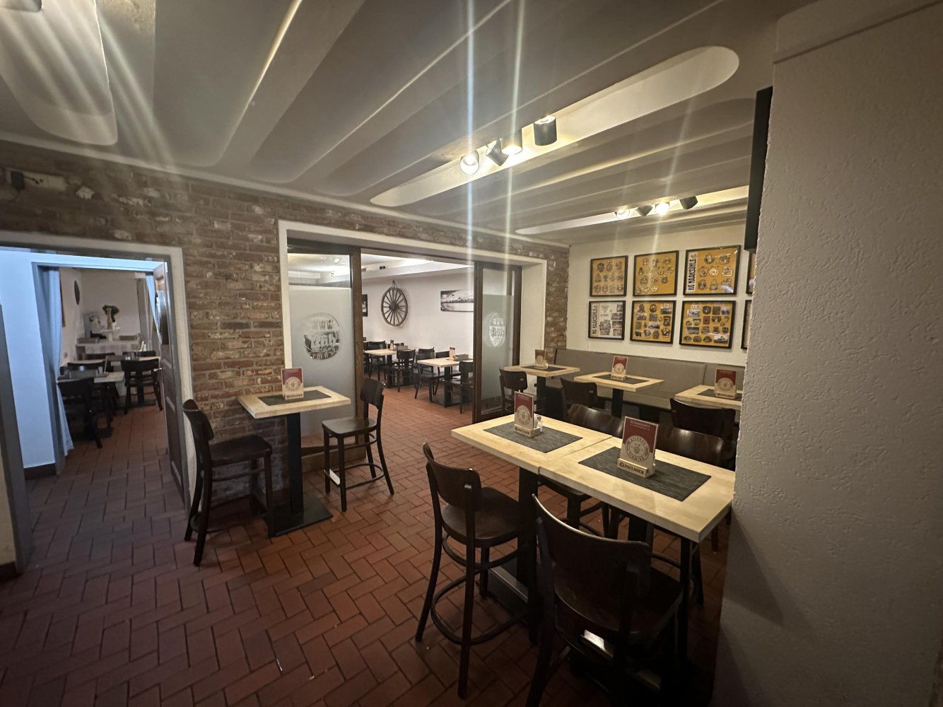 Die Gaststätte ist in drei Bereiche unterteilt: den Thekenbereich, den Gastbereich und den Gesellschaftsraum, die jeweils unterschiedliche Atmosphären bieten.